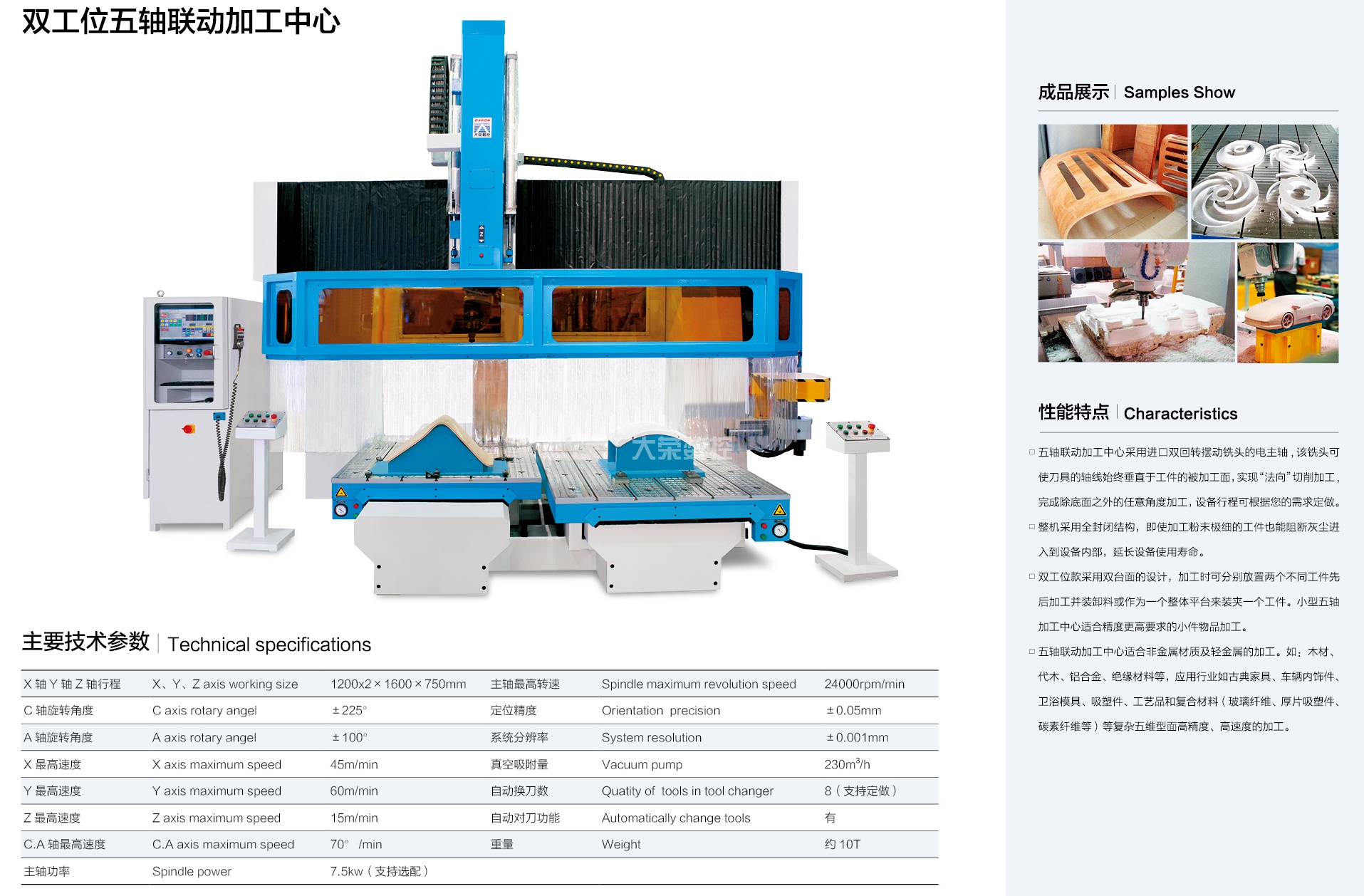 大榮偉業(yè)公司本著"品無止境,誠信為本,追求卓越"的原則,精心投入 CNC 數(shù)控機械行業(yè),先后研發(fā)出:CNC 五軸聯(lián)動加工中心、數(shù)控板材加工中心、數(shù)控板式家具生產(chǎn)線幾大系列十幾個規(guī)格的產(chǎn)品。被廣泛應(yīng)用于機械,科研院所,保麗龍加工、車輛內(nèi)飾、厚片吸塑件、鋁板、輕金屬、絕緣材料、各類木板材、木器、木門、模具、化工、廣告、石材加工等不同領(lǐng)域,并遠銷世界各國。欣大榮公司借鑒國外技術(shù),采用原裝進口優(yōu)質(zhì)配件,確保整機質(zhì)量。企業(yè)已通過 ISO9001質(zhì)量體系認證及 CE 認證。